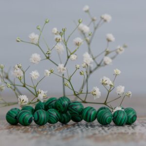 Обращаем внимание на то, что фото не обработаны в фотошоп, но устройство может изменять передачу цвета. А также на то, что бусины могут незначительно отличаться по размеру и цвету, имеют индивидуальный рисунок, поэтому ваш браслет будет отличаться и от того, который представлен на фото и от других браслетов из малахита.