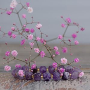 Аметистовый браслет может стать отличным подарком 6, 17, 48-ую годовщину свадьбы. Браслет из аметиста с лаконичной металлической вставкой идеально подойдёт и мужчинам, и женщинам. Для того чтобы браслет из аметиста отдал вам всю свою силу женщинам стоит носить его на левой руке, а мужчинам – на правой.